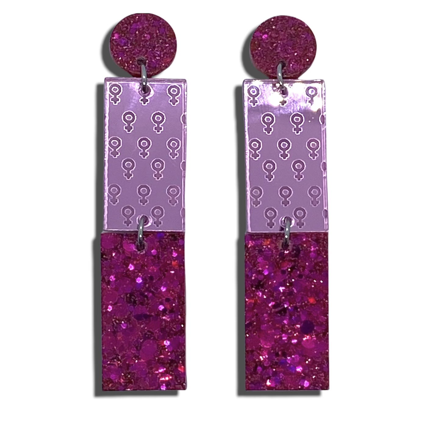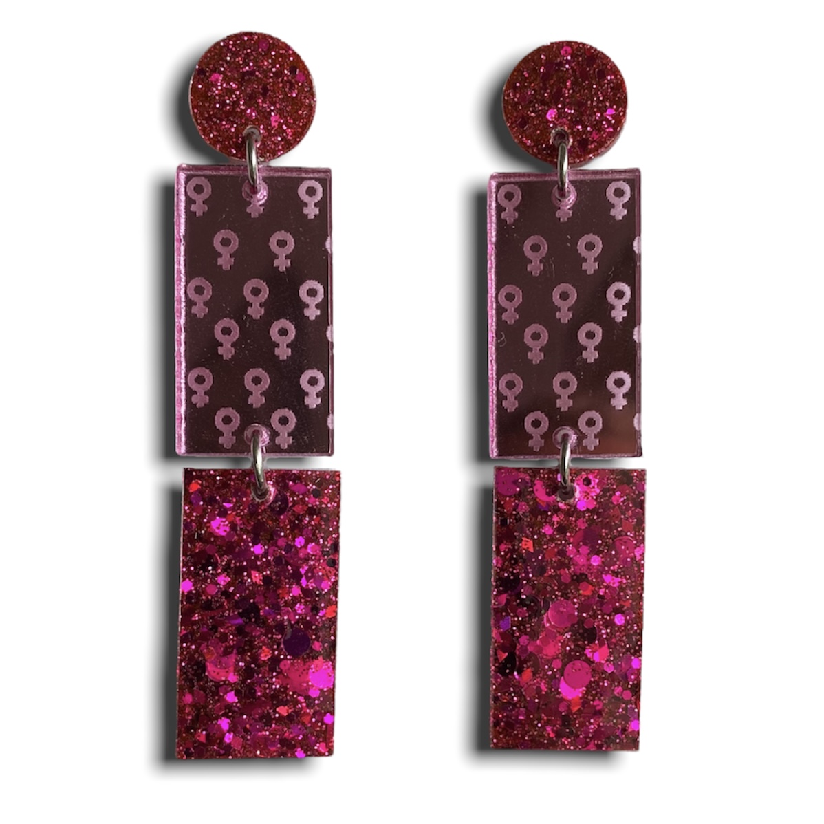 - Dangles in pink and cerise holographic glittermix